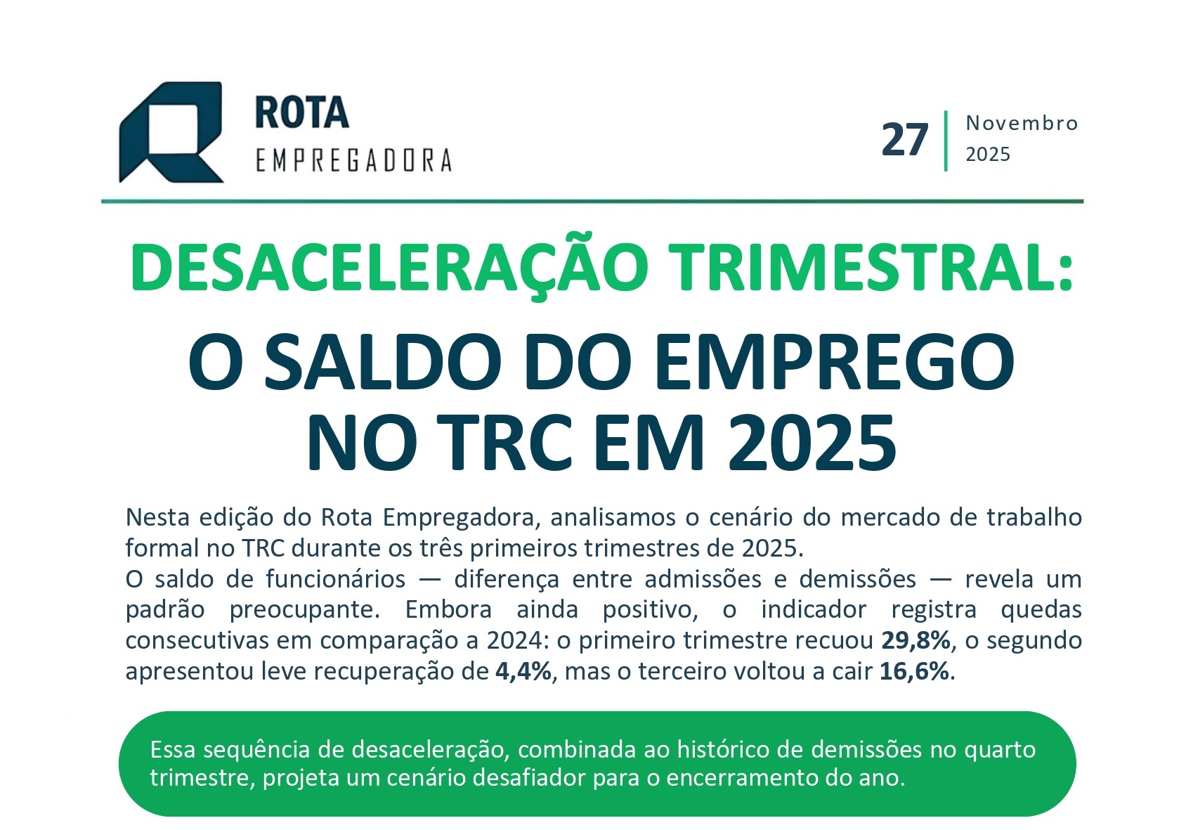 Desafios e Força do Setor: O TRC apresenta o menor índice de rotatividade da série histórica, com um turnover de 3,51% em 2020, mesmo durante a pandemia. E mais: o setor oferece salários 65% acima do salário mínimo, provando sua solidez e resiliência.
